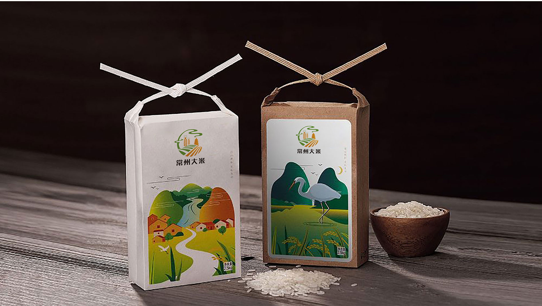 常州大米品牌视觉系统通过LOGO、包装及VI系统设计,深度融合地域文化、产业特色与现代设计理念,提取 “常州大米” 专属符号,强化 “常字号” 整体辨识度,形成差异化的品牌视觉识别系统;品牌语言系统则以 “中国贤士之乡,好山好水好味稻” 为锚点,规范表达逻辑,在传播和沟通中传递品牌特质。